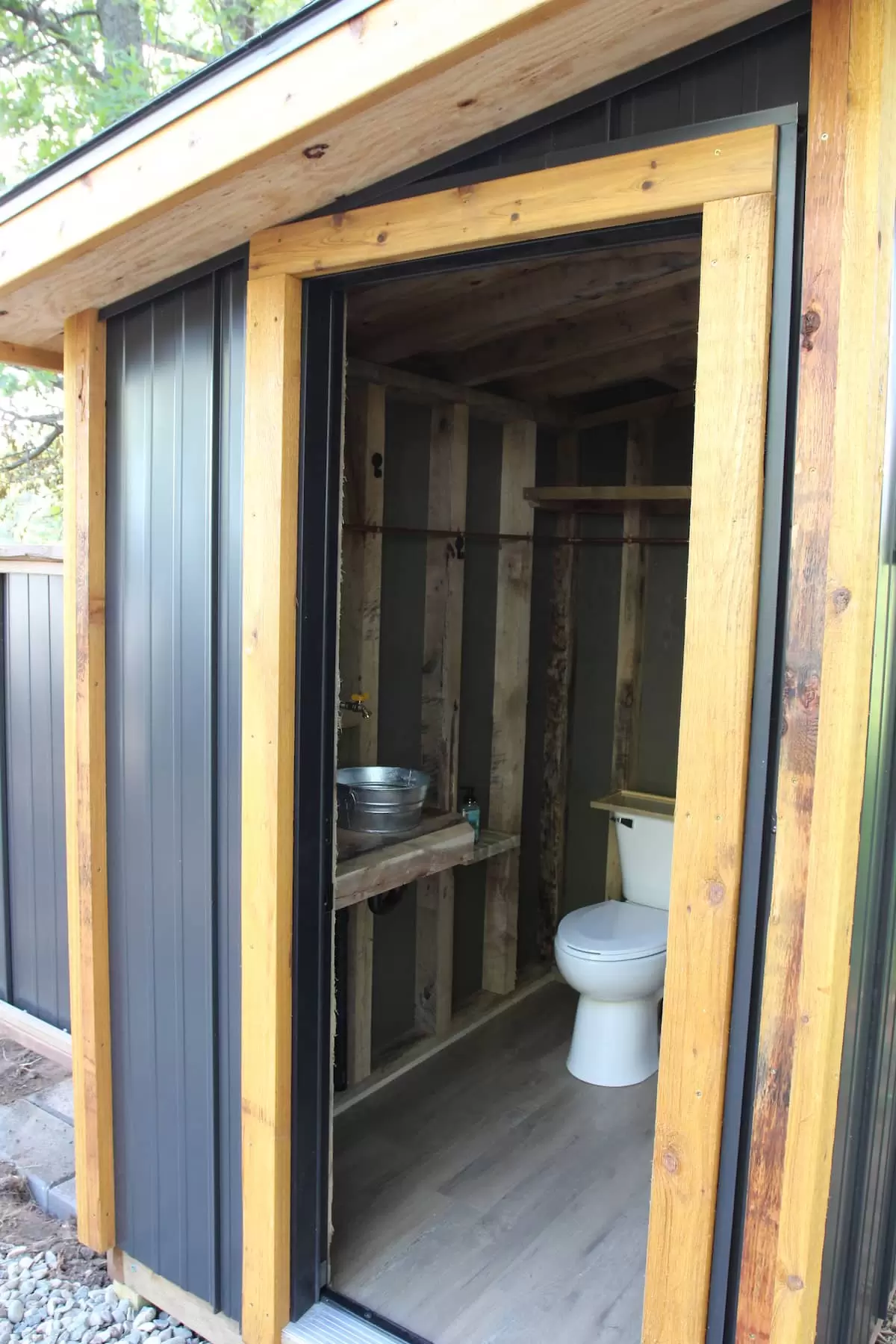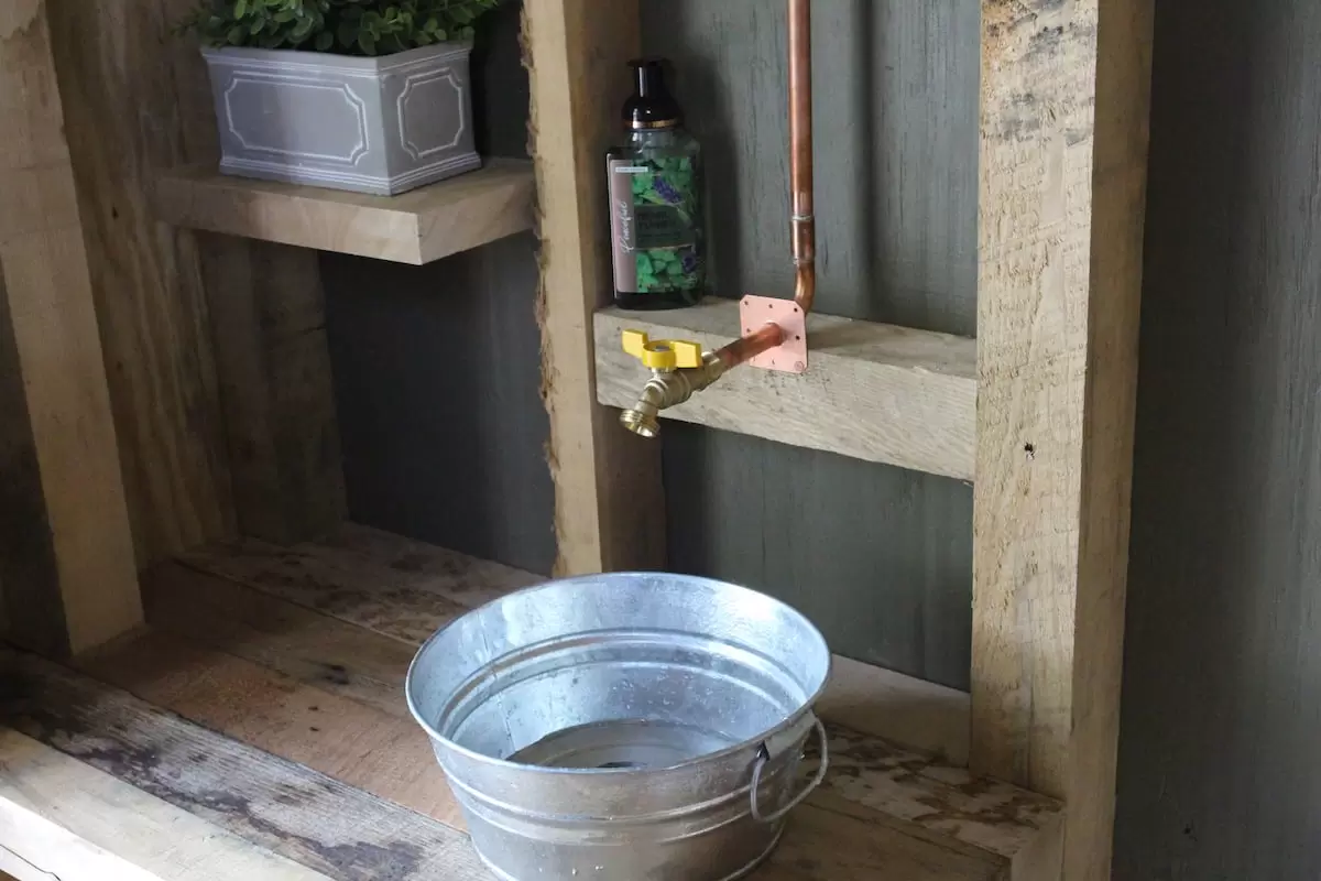 We aim to fully immerse you in nature while still offering comfortable, modern glamping amenities. The shared bathroom features a large water reservoir for flushing, washing, and showering—no outhouses here.